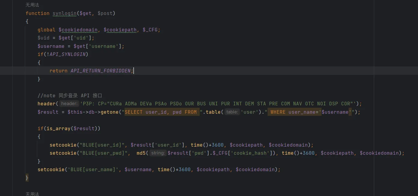 并没有地方使用synlogin函数,也就是参数不可控,所以此处无法产生sql注入