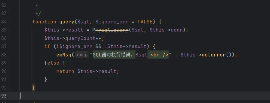 这里有一个这个函数,传入一个ip然后将ip进行拼接后执行sql语句, 这里的db->query()同样是自己写的sql查询,无过滤