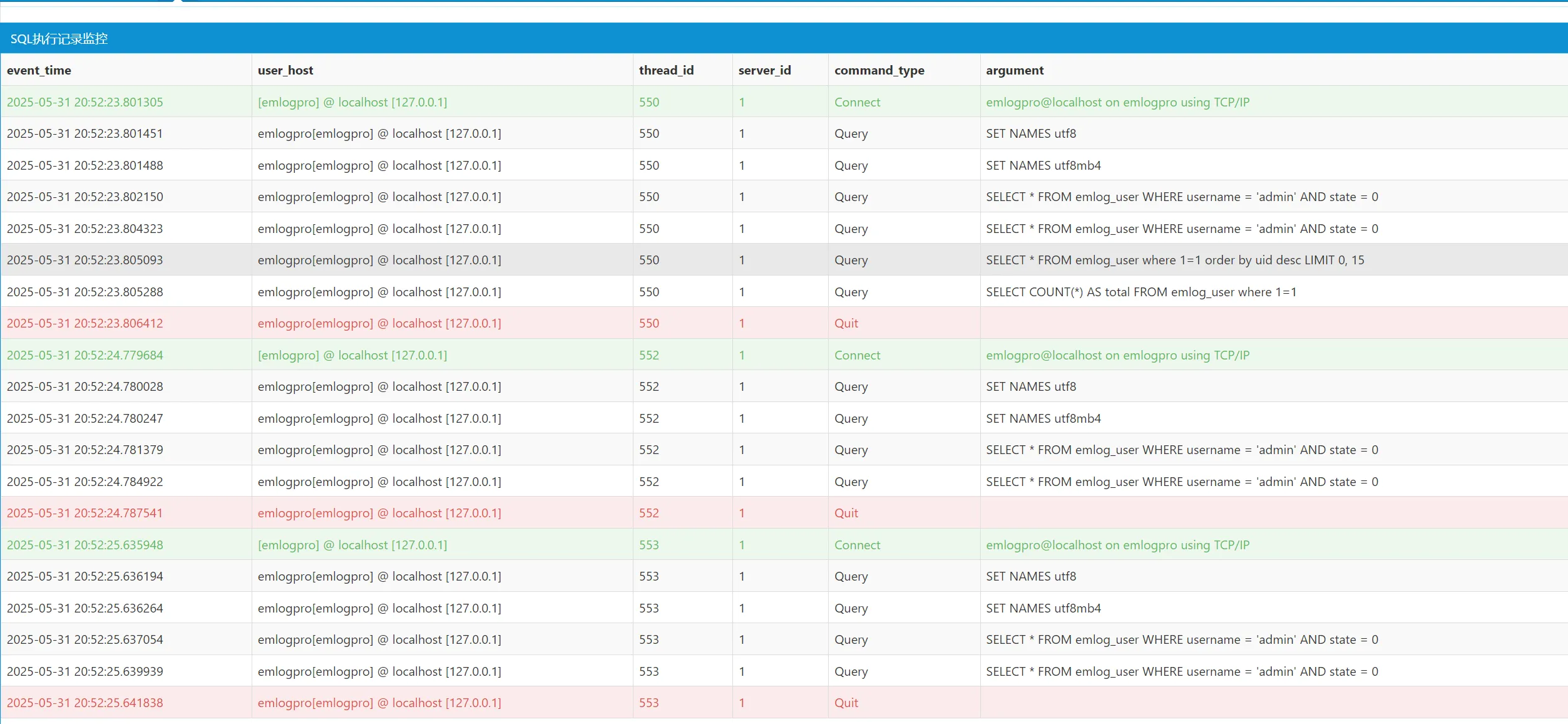 这里我们使用一个数据库监测工具来检测运行此页面时都执行了哪些sql语句